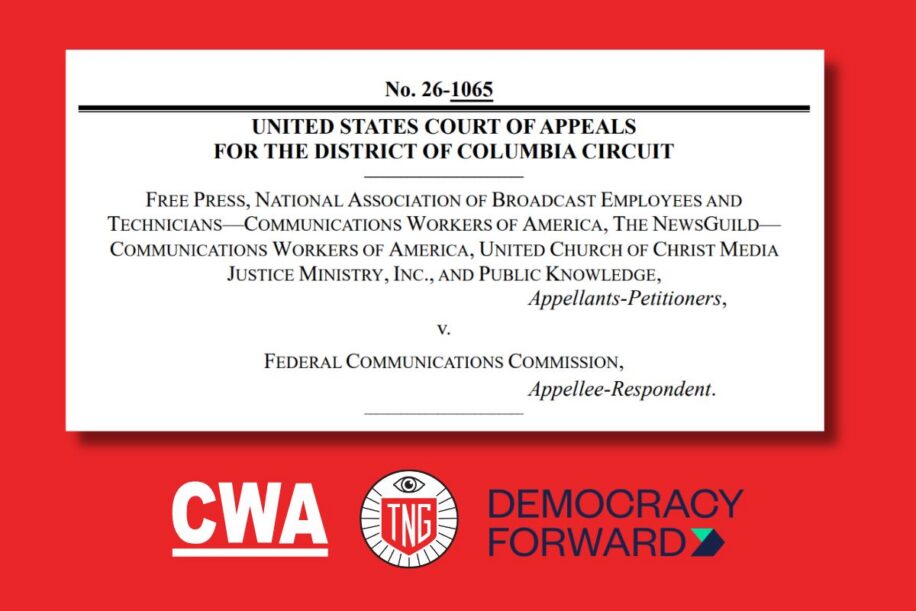 Last month The NewsGuild-CWA joined a lawsuit with a large coalition of organizations supporting a free press and broadcasters to appeal the largest broadcast merger in the history of the United States.